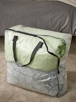 Эта прозрачная сумка для хранения размером 65×22×65 см — удобное решение для организации вещей дома. Её объём позволяет разместить одежду, игрушки, одеяла или другие предметы. Прозрачный материал позволяет легко видеть содержимое. Молния защищает вещи от пыли и грязи, что делает сумку удобной для ежедневного использования. Можно ставить на полку, пол или в шкаф.