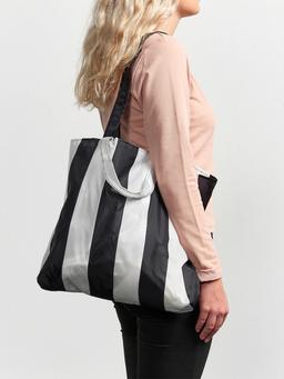 Эта сумка для покупок изготовлена из прочного и лёгкого материала, идеально подходит для повседневного использования. Компактная, но вместительная — удобна для покупок, книг или мелочей. Белый цвет с чёрными полосами придаёт современный стиль. Легко складывается и занимает мало места. Размер: 45 × 36 см