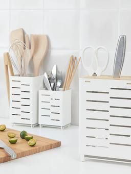 Этот держатель можно использовать для сушки и хранения ножей, вилок и других кухонных инструментов, которыми вы пользуетесь каждый день. Вентиляционные отверстия обеспечивают воздухообмен и быструю сушку кухонной утвари. Маленький и современный держатель идеально впишется в любую кухню, независимо от стиля. В нижней части держателя имеется поддон для сбора воды с мокрой посуды, чтобы сохранить внутреннюю часть сухой и предотвратить образование конденсата. Высота: 13 см Длина: 10 см Ширина: 7 см