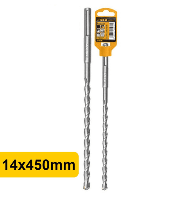 Сверло ударное по бетону SDS-plus 14х450 мм INGCO DBH1211405 INDUSTRIAL применяется совместно с перфораторами, имеющими тип крепления SDS-plus для сверления отверстий в бетоне, кирпичной кладке, натуральном и искусственном камне.