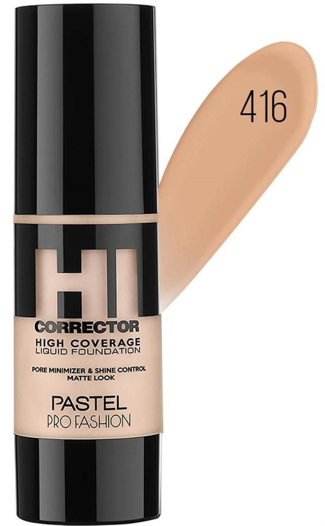 PASTEL Profashion Hi Corrector High Coverage Liquid Foundation №416 Тональная основа Hi Corrector №416 — это высокопигментированное средство, разработанное для достижения безупречного тона кожи с максимальным перекрытием. Обладая плотной текстурой, она эффективно скрывает выраженные несовершенства, такие как пигментные пятна, покраснения и неровности рельефа. Оттенок №416 — это сбалансированный светло-бежевый тон, который идеально подходит для кожи светлого типа, придавая ей здоровый и однородный вид. Специальные ингредиенты в составе формулы помогают визуально сузить поры и контролировать жирный блеск, обеспечивая стойкий матовый финиш на протяжении 24 часов. Идеально подходит для профессионального и вечернего макияжа.