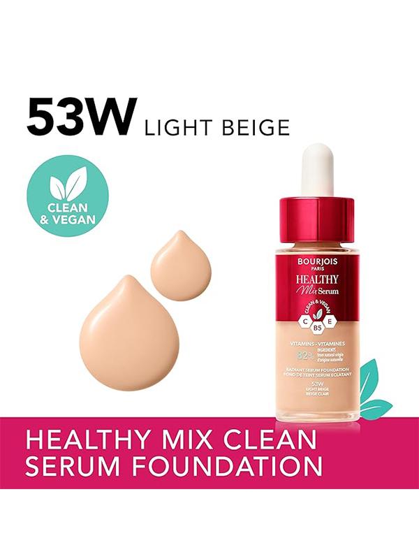 Характеристики Цвет: №53W LIGHT BEIGE Объем: 30ml Описание Bourjois представляет тональную основу Healthy Mix Serum Foundation — идеальное сочетание сыворотки и макияжа. В его состав на 82% входят натуральные ингредиенты, он чистый и веганский, обогащен витаминами С, Е и В5, а также экстрактом красной клюквы, натуральным компонентом против морщин, который тонизирует и разглаживает кожу, восстанавливая ее эластичность. погода. Он имеет множество преимуществ, в том числе тонизирует кожу, восстанавливает эластичность, придает здоровое сияние и увеличивает увлажнение благодаря смеси витаминов! Он имеет среднюю степень покрытия лица, а его шелковистая и сочная текстура придает коже здоровый и сияющий вид. Способ применения Нанесите увлажняющую основу Healhy Mix кистью или кончиками пальцев от центра лица к краям.
