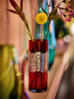 Ваза IKEA HEMBJUDEN красный/серебристый цвет, 13 см