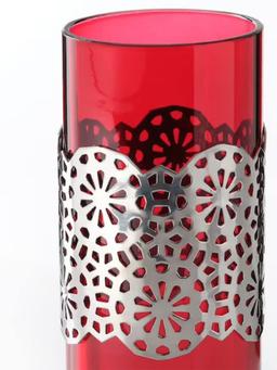 Этот подсвечник размером 13 см в красно-серебристых тонах добавит изящества вашему дому. Украшен разнообразными полосами, он выглядит особенным и оригинальным. Благодаря компактному размеру его можно разместить на столе или в любом другом месте.