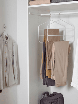 Вешалка GÅRDSMÄSTARE предназначена для подвешивания брюк и юбок без образования складок. Ее регулируемые зажимы и тонкий дизайн экономят место в шкафу. Области Применения: Хранение брюк, юбок и другой нижней одежды в шкафах. Технические Характеристики Цвет: Белый Материал: Сталь, АБС-пластик Размеры: Ширина: Прибл. 36 см. Особенности: Регулируемые, нескользящие зажимы.