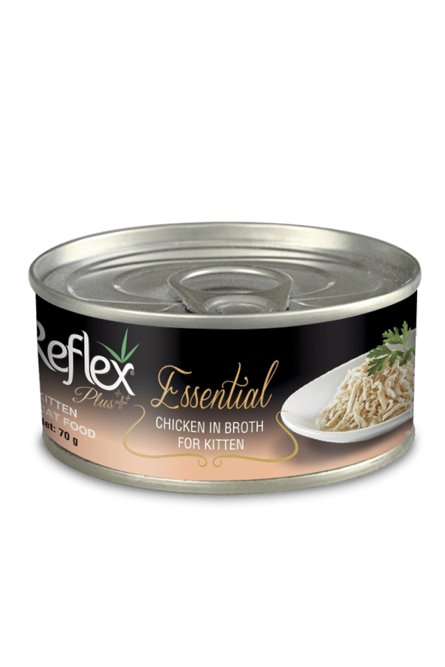 Влажный корм для кошек Консервированный корм для котят Reflex Plus Essential с курицей в бульоне 70гр
