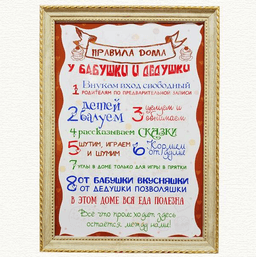 Постер "Правила дома у бабушки и дедушки" А4 в рамке
