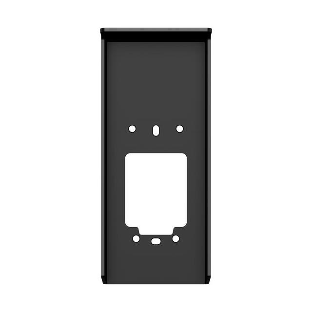 Козырек выполнен из прочного поликарбоната и предназначен для накладного монтажа. Он защищает вызывную панель от прямого попадания дождя и снега, а также предотвращает перегрев корпуса под солнечными лучами. Благодаря своей форме козырек исключает появление бликов на линзе камеры, сохраняя высокое качество видеосвязи