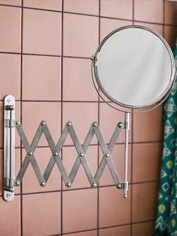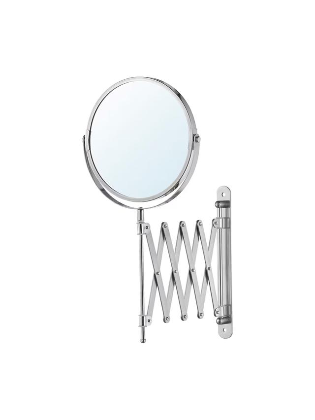 Это зеркало из нержавеющей стали удобно для использования в ванной или других частях дома. Благодаря выдвижной конструкции его можно приближать для детального просмотра. Двустороннее — с обычной и увеличивающей стороной.