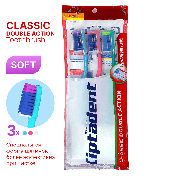 Зубная щетка Ciptadent Classic Double Soft предлагает мягкую щетину для бережного очищения зубов, особенно подходящую для людей с чувствительными деснами. Щетинки изготовлены из мягкого материала, обеспечивающего тщательное очищение без раздражения десен.