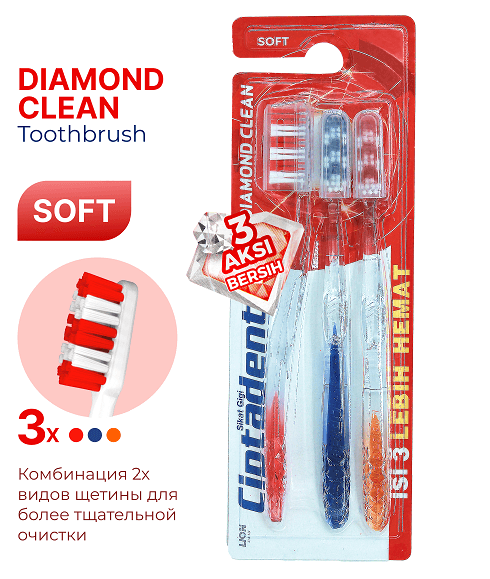 Ciptadent Diamond Clean Soft — набор мягких зубных щёток, разработанных для эффективной и бережной чистки зубов и дёсен. Ультратонкие щетинки проникают в труднодоступные участки, помогая удалять налёт даже между зубами и вдоль линии дёсен.