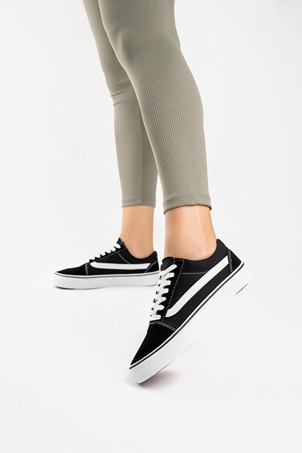 Cochines Kadın Erkek Siyah Beyaz Keten Spor Ayakkabı Sneaker