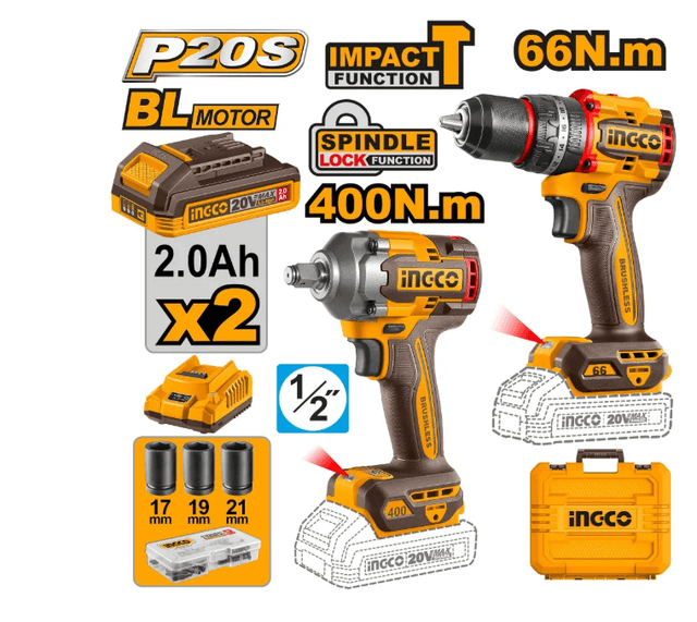 Набор шуруповерт и бесщеточный импульсный гайковерт INGCO CKLI20275 INDUSTRIAL 20В