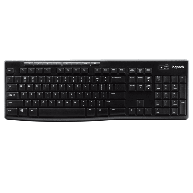 Logitech K270 Wireless — bu amatlylygy, ygtybarlylygy we batareýanyň uzak ömrüni özünde jemleýän doly ölçegli simsiz klawiaturadyr. Ygtybarly simsiz baglanyşyk: Logitech Advanced 2.4 GGs tehnologiýasy 10 metre çenli aralykda bökdençsiz we takyk işlemegi üpjün edýär. Logitech Unifying resiweri: Kiçijik USB resiweri arkaly bir porta 6 sany ylalaşykly enjamy (syçanjyk, klawiatura) birikdirip bolýar. 8 sany çalt elýeterli düwme: Multimeýdia dolandyryşyna, internete, elektron poçta we ses sazlamalaryna bir basymda girmäge mümkinçilik berýär. Suwa dözümli gurluş: Klawiatura tötänleýin dökülen suwlara dözümli edip ýasalandyr, bu bolsa enjamyň ömrüni uzaldýar. Uzak möhletli batareýa: Energiýany tygşytlaýjy ulgamy saýasynda, batareýalaryny çalyşmazdan 24 aýa çenli işläp bilýär. Elipbiý (Layout): ENG/ARAB (Iňlis we arap elipbiýli).