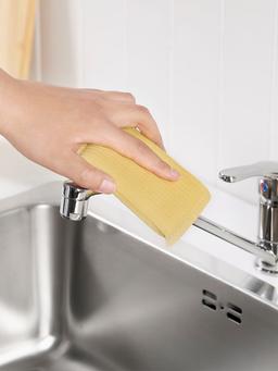 Iýmitli ýaşyl, gök we sary reňklerde arassalaýjy mata. Döwrebap we çydamly, dürli ýüzleri arassalamak üçin amatly.