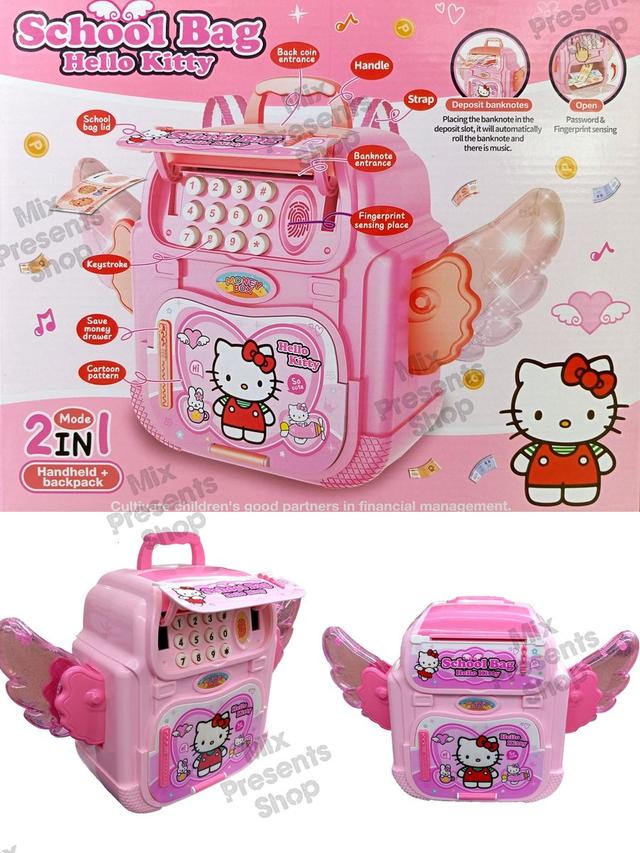 Электронная копилка банкомат-школьный портфель 2в1 "Hello kitty" с кодовым замком и отпечатком пальцев