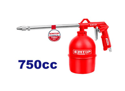 EMTOP EASGW10011 netijeli arassalamak üçin niýetlenen ýokary öndürijilikli howa bilen ýuwujy pistoletdir. 750 sm³ göwrümi we 215 mm diametrli nasadkasy bilen ol dürli şertlerde netijeli ýuwmagy üpjün edýär. Esasy häsiýetnamalary: Nasadkanyň ölçegi: 215 mm Ýuwujy serişdäniň göwrümi: 0,75 l Ýewropa, Amerikan, Italýan we Nitto görnüşli birikdirijiler bilen gabat gelýär. Iş basyşy: 4 bar Gaplamasy: Reňkli guty (bir gutuda iki sany EASGW10011) Tehniki häsiýetnamalary: Agramy: 0,5 kg Materialy: Poslamaýan polat Reňk görnüşleri: Gyzyl Kuwwat talaplary: Howa kompressory (4 bar) Başga häsiýetnamalary: Dürli arassalamak işleri üçin amatlydyr.