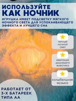 Игрушка дышащая плюшевый мишка (подсветка, дыхание, музыка)
