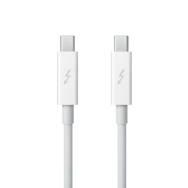 Apple Thunderbolt ýokary tizlikli kabeli maglumatlaryň örän çalt geçirilmegini we giňeldilen birikme mümkinçiliklerini üpjün edýär. Ol Thunderbolt goldawy bolan enjamlary (daşky gaty diskler, monitorlar, dok-stansiýalar) Mac kompýuteriňize birikdirmäge mümkinçilik berýär. 0,5 metr uzynlygy artykmaç simleriň bolmazlygyny we enjamlaryň iş stoluňyzda ykjam ýerleşmegini üpjün edýär. Esasy artykmaçlyklary: Örän ýokary tizlik: Maglumat geçiriş tizligi 10 Gbit/sek ýa-da 20 Gbit/sek çenli (portuň nesline baglylykda). Köp funksiýalylyk: Maglumatlary, ýokary durulykdaky wideo signallaryny we tok iýmitini geçirmegi goldaýar. Yzygiderli birikme: Bir zynjyra alty enjama çenli yzygiderli birikdirmäge mümkinçilik berýär.