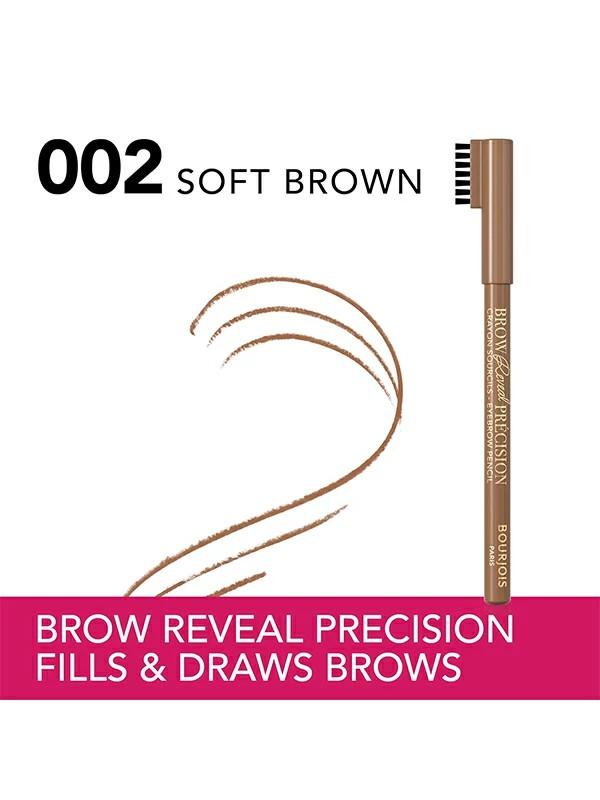 Aýratynlyklary Reňk: №002 SOFT BROWN Göwrümi: 1.4gr Düşündiriş Brow Reveal Precision daragy bilen gaş galam. Bourjois Brow Reveal Precision bilen gaşlarňyza şekil beriň. Galamyň täze ýokary pigmentli formulasy we tozan dokumasy gaşlaryňyzy şekillendirip, owadan, tebigy reňk bilen doldurmaga mümkinçilik berýär we çotga ajaýyp ten berýär. Ulanyş tertibi Urgulary dogry we deň derejede ulanmak üçin gaşlary daramaly we galam bilen bellemeli. Soňra gaş çotgasy bilen daralýar we urgularyň özleri gaşyň ösmegi ugrunda ulanylýar.
