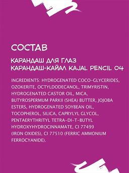Aýratynlyklary Reňk: №04 WHITE Göwrümi: 1gr Düşündiriş Essence Kajal Göz Galam ýumşak gurluşa eýe we islendik ini tekiz çyzyklar bilen ulanmak aňsat. Göz gabynyň reňki dykyz we gaty pigmentli çykýar. Kaýal daşky gabagyň derisinde we göz konturynyň duýgur gyjyndyrmasyny döretmeýär we uzak dowamlylygy bar. Ulanyş tertibi Gözüň görnüşine baglylykda kontur çyzyň. Gözleriň konturyny takyk görkezmek üçin bir üznüksiz çyzyk çekmäň, gözüň içki burçundan daşyna geçip, yzly-yzyna birnäçe gezek uruň. Dumanly göz effekti üçin garyşdyryň.