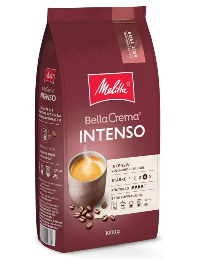 Marka: MELITTA Agramy: 1 kg Kofe görnüşi: Däneli Kofe Gowurma derejesi: 4/5 Orta-garaňky dereje gowurma Däneleriň görnüşi: 80% Arabika/ 20% Robusta Tagamy: Güýçli, baý, ýokumly tagam. Saýlanan Arabika we Robusta görnüşleriniň ajaýyp, baý garyndysy. Baý ysly lezzetli kofe. Hozuň bellikleri bilen güýçli tagam. Içgileriň görnüşi: Espresso, kappuçino, latte makkiato, kofe krem Öndüriji: Germaniýa