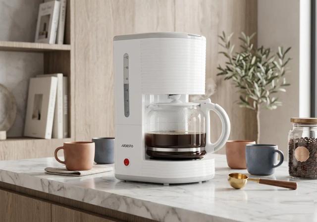 Ardesto FCM-D17WG damjalaýyn kofewarkasy uly göwrümi we owadan dizaýny bilen tapawutlanýar. 1.5 litrlik aýna gaby bir wagtyň özünde 12 käse çenli kofe taýýarlamaga ýeterlikdir. Altyn reňkli detallar we ak korpus enjama aýratyn görk berýär. Awtomatiki gyzdyryş funksiýasy kofeniň uzak wagtlap gyzgyn we tagamly galmagyny üpjün edýär. Süzgüç ýörite niýetlenen durnukly materialdan ýasalandyr.