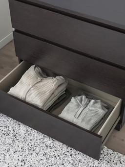 Bu 3 çekmeli komod 80x78 sm ölçegde bolup, gara reňkde öndürilendir. Ýönekeý we döwrebap görnüşi bilen islendik otaga laýyk gelýär — egin-eşik, dokument ýa-da beýleki ownuk zatlary saklamak üçin amatlydyr. Çekmeleri ýeňil süýşýär we giňdir, şeýle hem üstki bölegi bezeg ýa-da lampanyň ýerleşdirilmegi üçin peýdalanylyp bilner. Materialy: agaç şonuň ýaly-da MDF (polimer örtük bilen). Ölçegi: 80x78 sm.