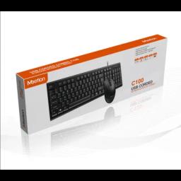 C100 kompýuter klawiaturasy we syçan, ergonomiki dizaýnly simli toplum. Nyşanlaryň üstü, iş netijeliligini ýokarlandyrýan we uzak ömri üpjün edýän UV çap etmek arkaly ýasalýar. Toplumyň käbir aýratynlyklary: Klawiatura ýazanyňyzda elleriňizi we bilekleriňizi has tebigy ýagdaýda saklamaga kömek edýär. Syçan ekologiýa taýdan arassa we çydamly ABS materialdan ýasaldy. Klawiatura suw geçirmeýän, suw, içgiler we beýleki suwuklyklar ulanylanda tötänleýin ýüze çyksa, işlemegi dowam etdirmäge mümkinçilik berýär. Klawiatura düwmeleri sessiz düzülendir, bu düwmeleri basmak üçin amatly şert döredýär. Toplum özbaşdak işleýär we goşmaça programma üpjünçiligini gurmagyň zerurlygy bolmazdan. USB porty arkaly kompýutere birikdirilende iş birnäçe sekundyň içinde başlaýar. Toplum ofis, öý, açyk dynç alyş we güýmenje we ş.m.