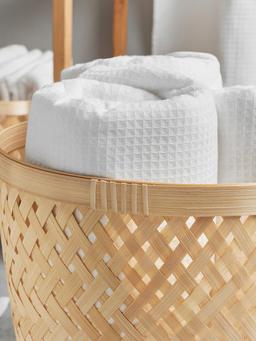 Bu Çydamly we güýçli bambukdan ýasalan el sebedi wanna otagynda ulanmak amatly, sebäbi aşaky aýaklar çyglylygyň poldan siňmegine we sebete zeper ýetmeginiň öňüni alýar. Material Bambuk, Boýy: 22 sm Diametri: 30 sm