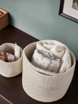 Bu sebet köplenç ulanýan we güýmenje zatlary ýa-da geýim esbaplary ýaly birneme ulurak zatlar üçin amatly we çydamlydyr. Material 100% pagta Diametri: 25 sm Boýy: 23 sm