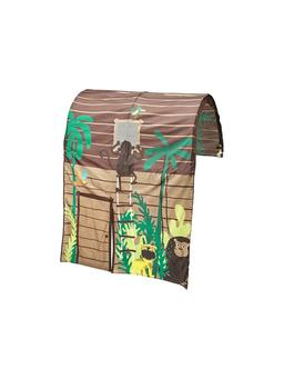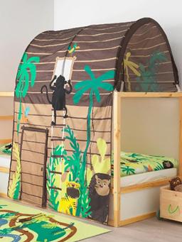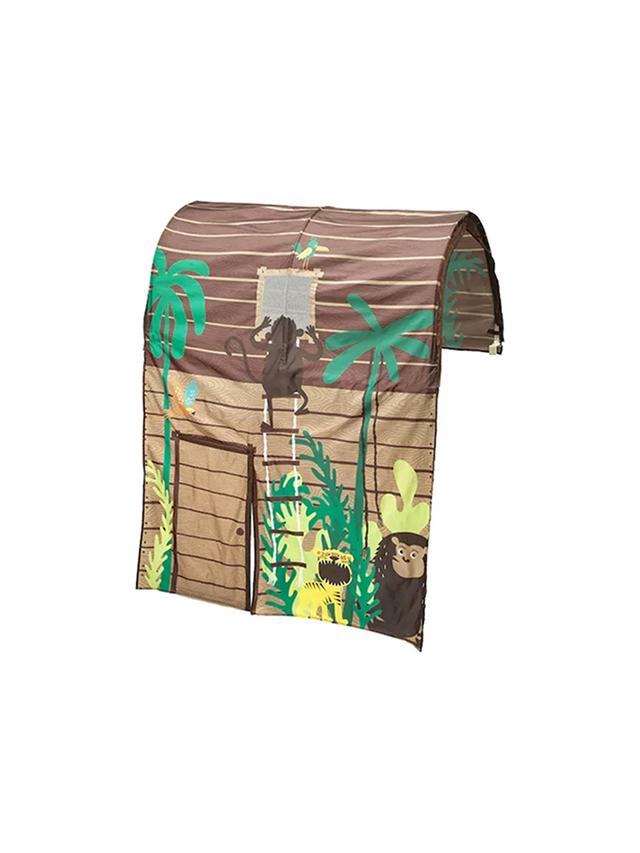 Perdeli çadyr görnüşli krowat, goňur — çagalar üçin owadan we oýnamaga amatly krowat, üstünde gizlinlik we oýun üçin perde bar. Materialy: agaç we tekstil Reňki: goňur Ulanmaga ýer: çagalar otagy, oýun zaly Aýratynlyk: çadyr görnüşi, perde bilen gizlenme mümkinçiligi, durnukly we berk gurluş, oýun we dynç alyş üçin amatly