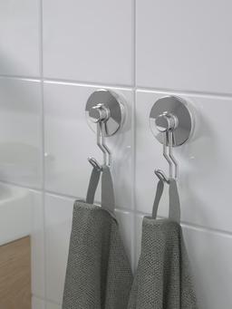 Bu asgyç diňe hammamda ulanmak üçin niýetlenen. Güýçli ýelmenýän (“samokleyka”) esasy bilen diwary deşmezden, aýna ýa-da keramiki kafel ýüzüne aňsatlyk bilen ornaşdyrylýar. Galwanizirlenen polat materialy posdan goragly bolup, çygly şertlerde uzak wagtlap durnuklylygyny saklaýar. Polotensa, hammam esbaplary ýa-da duşda ulanylýan ownuk zatlary asmak üçin amatlydyr. Materialy: Galwanizirlenen polat, plastmassa, ýelmenýän esas. Ulanylyşy: Diňe hammamda – polotensa we duş esbaplaryny asmak üçin. Gözegçilik: Ýumşak süpürgi we sabynly suw bilen arassalamaly.