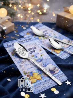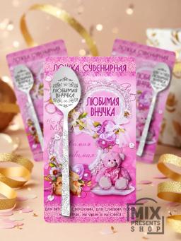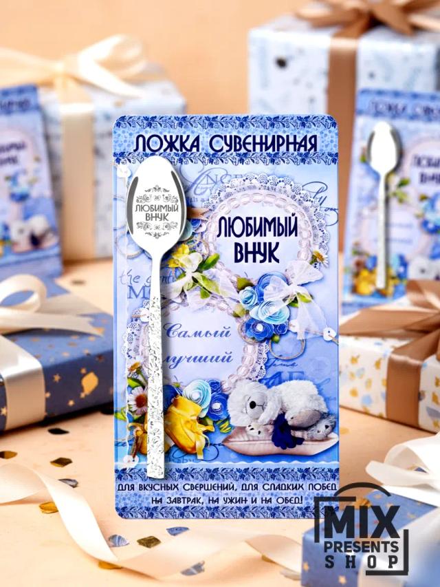 Ложка сувенирная "Любимый внук" на открытке (чайная)