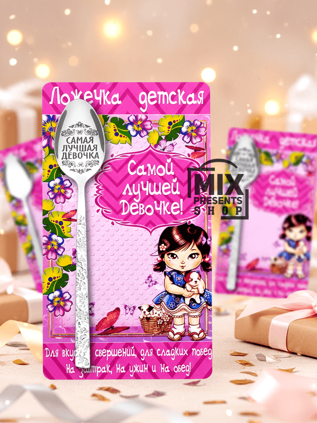 Ложка сувенирная "Самая лучшая девочка" на открытке (чайная)