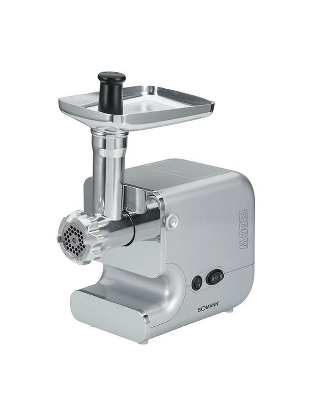 Bomann FW 447 CB elektrik et üweýji enjamy 1200 Wt kuwwatlylygy bilen islendik et görnüşlerini aňsatlyk bilen üweýän ygtybarly we ýokary öndürijilikli guraldyr. Korpusy we işçi detallary ýokary hilli poslamaýan polatdan we guýma alýuminden ýasalandyr, bu bolsa enjamyň uzak ömürliligini we arassalygyny kepillendirýär. Model dürli goýulykdaky farşlary almak üçin üç sany polat disk, şeýle hem öý şertlerinde kolbasa we köke taýýarlamak üçin ýörite nasadkalar bilen üpjün edilendir. Ýeňil işleýiş ulgamy (rewers funksiýasy) iş wagtynda bökdençlikleriň öňüni alyp, netijeli işlemegi üpjün edýär. Rezin aýajyklary enjamyň sypmazlygyny kepillendirýär, sypaýy dizaýny bolsa döwrebap aşhananyň görküne öwrüler.