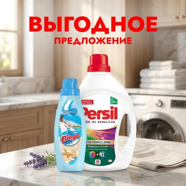 Bu eşiklere ideg etmek üçin uniwersal toplum, kirleriňiziň päkize bolmagyny we uzak wagtlap täzeje durmagyny üpjün eder. Persil ýuwujy geli (1690 ml) matanyň reňkini saklap, iň kyn tegmilleri hem aňsatlyk bilen aýyrýar, Bingo Soft "Lovely" ýumşadyjysy (1000 ml) bolsa eşiklere ajaýyp ýumşaklyk we näzik gül ysyny berýär.