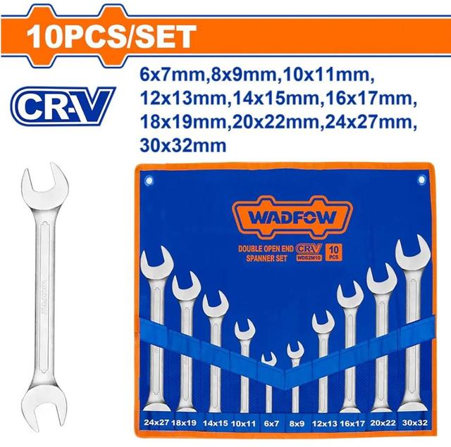 10 sany iki taraply açarlar toplumy Ölçegi: 6-32 mm, 6x7, 8x9, 10x11, 12x13 mm, 14x15, 16x17, 18x19, 20x22, 24x27, 30x32 mm Ýalpyldadylan, hromlanan, matowyý (bulanyk) ýüzli Kenep haltada gaplanan