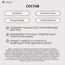 Köp gürrüň edilýän Biodance ýüz maskasy Kollagen we fermentler bilen bu çuňňur çyglylandyryjy gijeki gidrogel maskasy derini işjeň dikeltmek üçin niýetlenendir. Maskanyň peýdalary: Güýçli dikeldiji täsir berýär, derini çuňňur iýmitlendirýär, suwsuzlygy, guraklygy we gabyklanmagy aýyrýar. Deriniň päsgelçilik funksiýasyny dikeldýär, ony zyýanly daşky gurşaw faktorlaryndan goraýar. Derini ýumşak, berk we şöhle saçýar. Sagdyn mikrobiomy saklaýar we çişmegiň öňüni alýar. Deriniň reňkini deňleşdirýär we giperpigmentasiýanyň öňüni alýar. Esasy maddalar: Kollagen deriniň päsgelçilik funksiýasyny güýçlendirýär, elastikligini saklamaga kömek edýär we ýaş bilen baglanyşykly üýtgeşmeleriň peýda bolmagynyň öňüni alýar. Galaktomices antioksidant täsire eýedir we deriniň reňkini deňleşdirmäge, deriniň immun goragyny güýçlendirmäge, çişmegi azaldýar we döküntüleriň we akne yzlarynyň öňüni alýar. Bifido- we laktobasillus lizatlary derini işjeň iýmitlendirýär, deriniň reňkini deňleşdirmäge, ýumşaklygy saklamaga we suwsuzlanmanyň öňüni almaga kömek edýär. Şeýle hem, olar patogen bakteriýalaryň ösmeginiň öňüni almak arkaly sagdyn deri mikrobiomyny goldaýarlar. Niasinamide deriniň reňkini deňleşdirmäge kömek edýär, ýumşak ýagtylandyryjy täsir edýär, giperpigmentasiýanyň öňüni alýar, ýumşadyjy we çişmä garşy täsir edýär, şeýle hem döküntüleriň we gyzarmagyň öňüni alýar. Irlandiýa moh ekstrakty çuňňur çyglylyk berýär, çyglylygyň ýitmeginiň öňüni alýar we deriniň päsgelçilik funksiýasyny saklamaga kömek edýär. Gialuron turşusy derini çuňňur çyglylandyrýar, çyglylygy saklaýar, suwsuzlanmanyň we guraklygyň öňüni alýar, şeýle hem ýumşaklygy we elastikligi saklamaga kömek edýär. Gül ekstrakty çuňňur çyglylandyrýar, garrama garşy güýçli täsir edýär we elastikligi we ýumşak deri teksturasyny dikeltmäge kömek edýär. Ulanylýanlar: Suwsuzlanmaga we elastikligiň ýitmegine meýilli ähli deri görnüşleri.