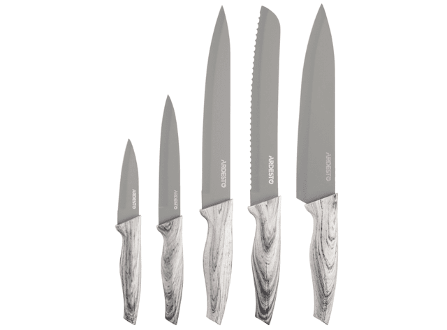 Ardesto Black Mars AR2105BG dürli kesiş amallary üçin niýetlenen pyçak toplumydyr. Ol umumy maksatly ulanmak, iýmit taýýarlamak, çörek kesmek, et kesmek we gök önümler/gabyklary aýyrmak üçin pyçaklary öz içine alýar. Tehniki häsiýetnamalary: Pyçagyň materialy: 3CR13 poslanmaýan polat. Pyçagyň uzynlygy: umumy maksatly pyçak – 127 mm, aşpez pyçagy – 203 mm, çörek pyçagy – 203 mm, et pyçagy – 203 mm, gök önümler/gabyklary aýyrmak pyçagy – 89 mm. Satuw materialy: berk plastik. Bölek sany: 5. Sertifikatlaşdyrma: Her bir pyçak berk hil gözegçiliginden geçýär we Ýewropa we Ukraina standartlaryna laýyklykda sertifikatlaşdyrylan. Seretmek boýunça görkezmeler: Pyçaklary gap-gaç ýuwýan maşynda arassalamaň; ýumşak gubka we ýuwujy serişde bilen el bilen arassalamak maslahat berilýär.