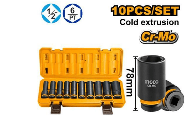 Набор удлиненных ударных торцевых головок 1/2" 10шт HKISSD12102L