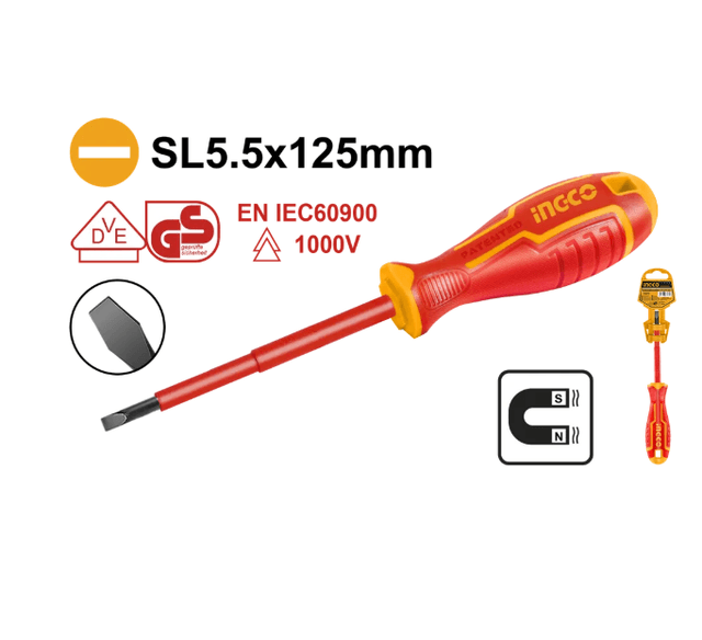 Ýasy dielektrik towlaýjy (otwertka) berkidiş şaýlary bilen dürli işleri ýerine ýetirmek üçin ulanylýar. Silindr görnüşli sterženi hrom-wanadiý poladyndan ýasalypdyr. Dielektrik örtügi durmuşy elektrik ulgamlarynda (1000 W çenli üýtgeýän tok) işlemegiň howpsuzlygyny üpjün edýär. Would you like me to translate the technical specifications for a specific model of this screwdriver?