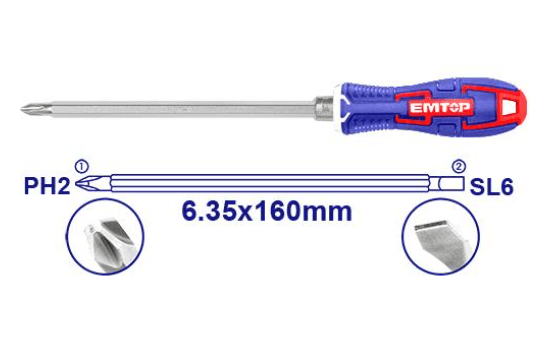 EMTOP ESDRH0202 atly atanak şekilli towlaýjy (PH2) EMTOP ESDRH0202 — bu nurbatly birikmeleri gurnamak we sökmek üçin niýetlenen ygtybarly PH2 standartly atanak şekilli towlaýjydyr (otwýortka). Ol berk hrom-wanadiý poladyndan (Cr-V) ýasalandyr, bu bolsa onuň uzak möhletleýinligini we deformasiýa garşy durnuklylygyny üpjün edýär. Gysga sterjeni dar ýerlerde işlemek üçin amatlydyr, magnitlenen ujy bolsa berkidijini saklamagy aňsatlaşdyrýar. Häsiýetnamalary: Ujunyň görnüşi: PH2 (atanak şekilli); Sterjeniniň uzynlygy: 75 mm; Materialy: Hrom-wanadiý polady (Cr-V); Aýratynlyklary: Magnitlenen uç, ergonomiki iki komponentli tutawaç.
