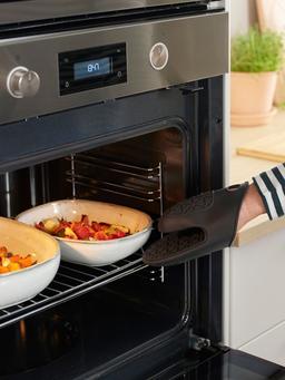 Gara reňkli silikonly peç guşagy, eliňizi gyzgynlyklardan goramak üçin amatlydyr. Ýumşak we çydamly.