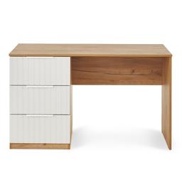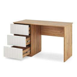 Hilton kolleksiýasyndan ýazuw we kompýuter stoly "Hilton" ýazuw stoly kiçi otaglarda ykjam iş ýa-da okuw meýdançasyny döretmäge kömek eder. Süýşürilýän çekmeler resminamalary we kanselýariýa harytlaryny elýeterli ýerde saklamaga mümkinçilik berýär. Korpusynyň agaç teksturasy we çekmeleriniň ak reňkli MDF-den bolan fasadlary interýere döwrebap görnüş berýär. Esasy aýratynlyklary: Korpusyň materialy: Agaç teksturaly LDSP. Fasadlaryň materialy: Ak reňkli MDF. Gurluşy: Giň stolüsti we süýşürilýän çekmeler. Niýetlenilişi: Iş, okuw we kompýuterde işlemek üçin. Ölçegleri: Boýy: 75 sm. Ini: 120 sm. Çuňlugy: 60 sm. Eltip bermek we gurnamak: Aşgabat şäheri boýunça mugt.