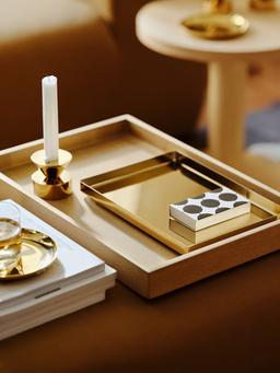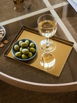 STOCKHOLM 2025 kolleksiýasynyň mis reňkli dekoratiw tabagy. Zergärçilik, açarlar ýa-da kiçi zatlary ýygnamak üçin ajaýyp. Ýokary hilli poslamaýan polat. Ulanmaly Ýerleri: Komod, ýatylýan otagyň stoly, myhman otagy. Tehniki Aýratynlyklary Reňki: Mis reňkli (brass-colour) Materialy: Poslamaýan polat (laklanan). Ölçegleri: Uzynlygy: 28 sm, Ini: 20 sm. Aýratynlyklary: Dekoratiw, laklanan, ýokary hilli dizaýn.
