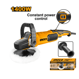 Ingco AP140028 Görnüşi: Elektrikli polirleýji maşyn Napräženiýe: 220-240 V Kuwwaty: 1400 Wt Tizligi: 900-3800 aýl/min Aýratynlyklary: Tizlik sazlamasy, disk diametri 180 mm.