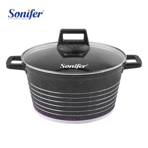 Diametri 24 sm bolan Sonifer SF-1172-24 professional gazany aşhanaňyz üçin göwrümiň we funksionallygyň ajaýyp deňagramlylygydyr. Ýokary hilli guýma alýuminiýden ýasalan bu gazan çalt gyzmagy we ýylylygyň deň paýlanmagyny üpjün edýär, bu bolsa önümleriň ähli peýdaly aýratynlyklaryny saklap, öz suwuna demini alyp bişmegine mümkinçilik berýär. Kämilleşdirilen granit anti-prigar örtügi çyzylmaga durnuklydyr we örän az ýag bilen nahar bişirmäge şert döredýär, bu bolsa bütin maşgala üçin sagdyn iýmitlenmegi kepillendirýär. Bug çykaryjy deşigi bolan gyzgyna çydamly aýna gapak içerki temperaturany birsydyrgyn saklaýar. Ergonomiki tutawaçlary we döwrebap dizaýny nahar bişirmegiň hiline we oňaýlylygyna ýokary baha berýänler üçin bu modeli ajaýyp saýlawa öwürýär.