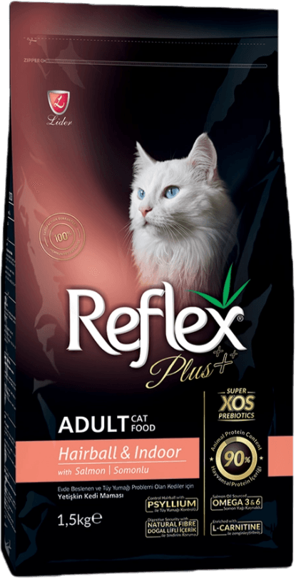 Reflex Plus шерстевыводящий сухой корм для взрослых кошек с лососем 1,5 кг