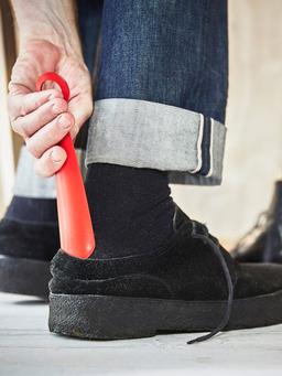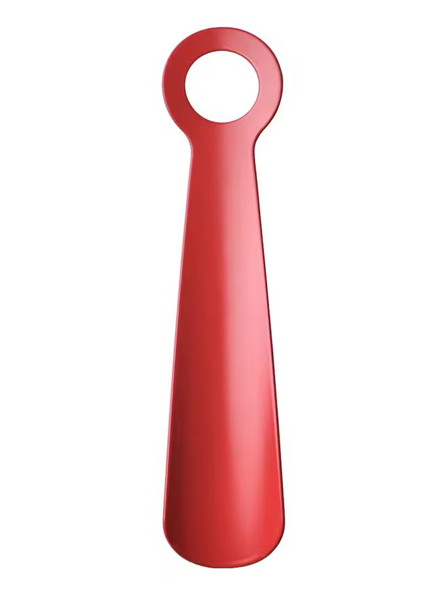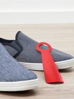 Açyk gyzyl reňkli 18 sm uzynlykdaky aýakgap geýmek üçin amatly gurallar. Ýönekeý we ýeňil ulanyşly, aýakgaplary aňsatlyk bilen geýmäge kömek edýär.
